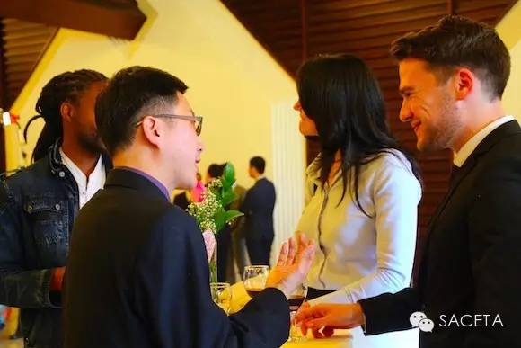 图为南非国际关系研究所研究员杜南石(Rudolf du Plessis)(右一)7月29日参加中国驻南非大使馆八一建军节招待会。人民网 张洁娴 摄