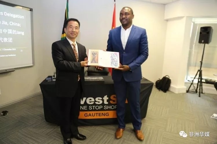 中方代表团将特色的砂石画赠与南非豪登省经济发展署