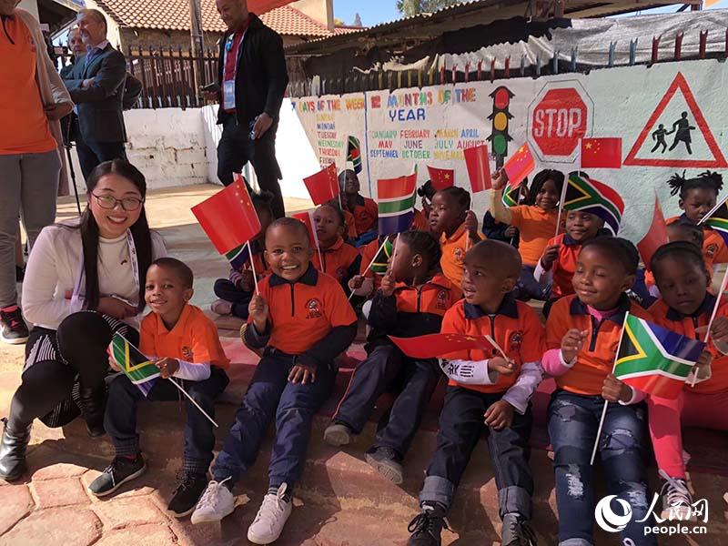 在早教中心的活动课上,志愿者靳心雨看到了童真可爱的孩子和善良又负责任的老师们,现场教孩子们画两国的国旗,当孩子们涂上色彩展示给大家看的那一刻,心雨觉得很感动,“我心中很是激动,看到祖国的国旗与南非的国旗在孩子们手中快乐的被挥舞着,便为自己所做的这些感到开心和骄傲。”当时有个孩子用英语对她说“老师,我想和你一起走,我想和你去中国。”那一刻,心雨感受到的是满满的信任和友爱,她感慨道,“那一刻,那个孩子真的很想去中国看一看,而我们也真的在努力让他们了解更多、更真实的中国,让他们可以更喜爱中国,这就是我们远离祖国奔赴这里的意义和价值所在。”