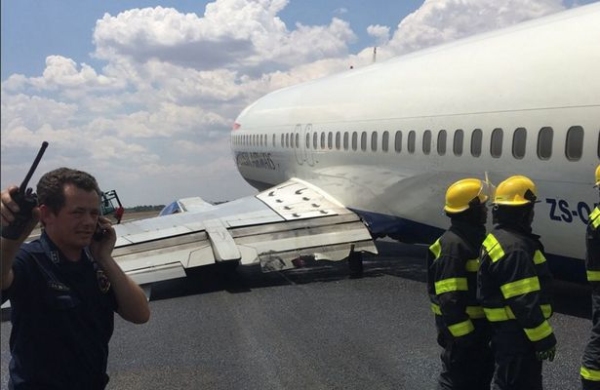南非商务航空公司发布声明称:“一架注册号为ZS-OAA的波音737-400飞机起落架着陆不久后折断,机组人员发现飞机产生了不同寻常的震动。南非机场公司(ACSA)紧急救援人员即刻赶往现场援助,帮助乘客和机组人员安全离开飞机。”