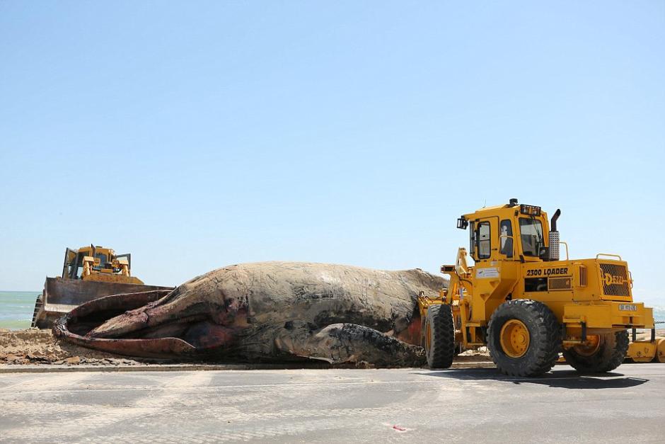 据当地媒体报道,鲸鱼的尸体已被用挖土机运走,将被安葬在一个垃圾填埋场。