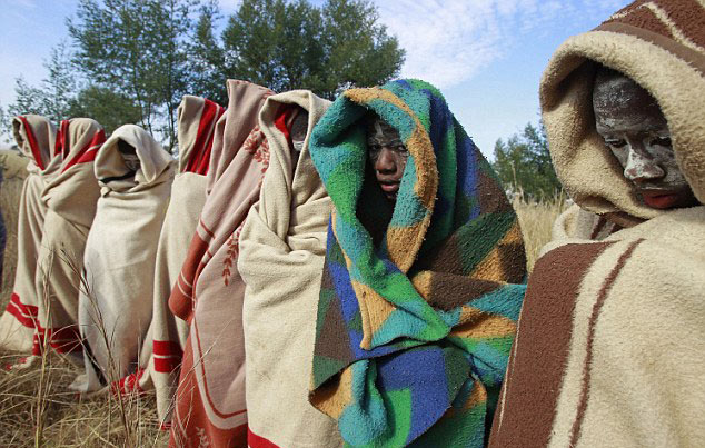 【环球网综合报道】英国《每日邮报》6月30日刊登了一组身处野外、裹着毛毯的少年的照片,这些少年将经历一年一度的南非传统割礼仪式,以宣告成年。但这一危险的文化传统对身体和心灵造成的创伤不可估量,由此引发人权主义者呼吁叫停。