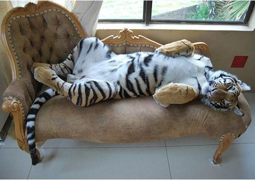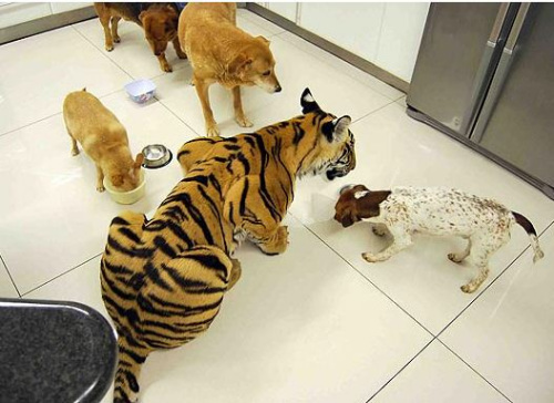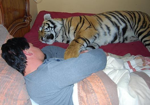 据报道,这只老虎重170公斤,与14只狗放被在一块饲养。它经常蜷缩在床,或在沙发上休息。主人迈克尔介绍,他一年前买下这只老虎,当时它只有9周大。如今,老虎每天必须吃10斤肉才可满足。