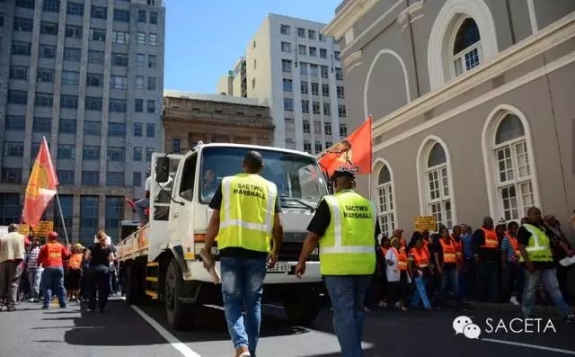 10月7日,南非工会联合会(Cosatu)在开普敦街头游行。(图片来源:Tina Hsu/ News24)