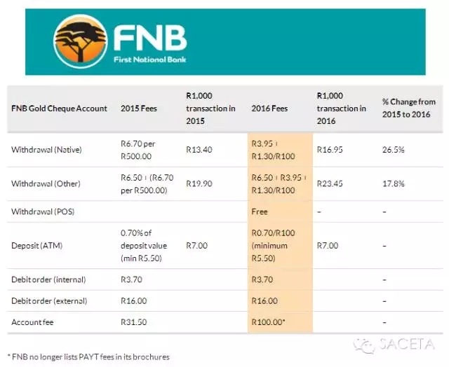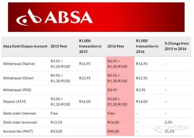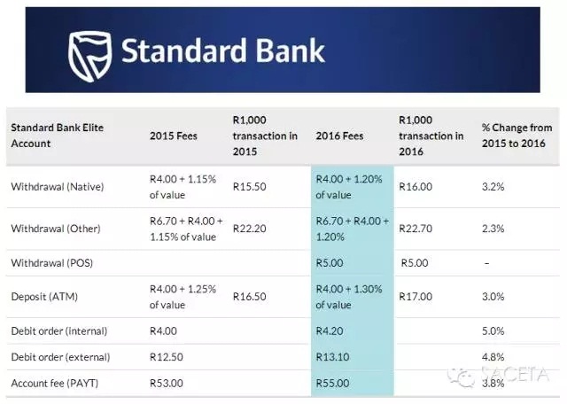 2016年南非主要银行调整收费标准
