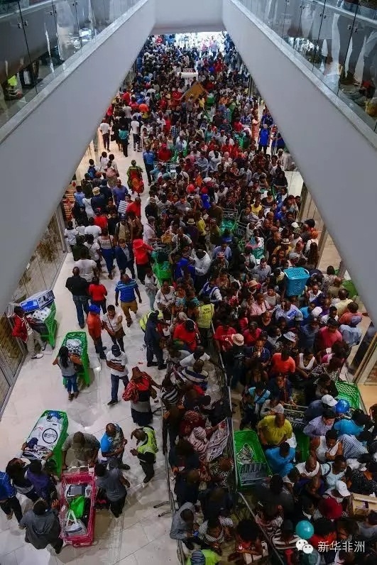 4月28日,南非最大的商场——非洲购物中心在约翰内斯堡旁的米德兰地区开门营业。非洲购物中心提供了13万平方米的零售区域,有超过300个当地和国际品牌入驻。许多品牌都在开业当日推出优惠活动吸引消费者,商场内顾客如潮,人头攒动。