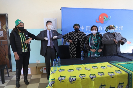 李南代办在讲话中积极评价非国大妇联为推动南非民族解放、国家发展和妇女进步作出的重要贡献,高度赞赏新冠疫情肆虐之际,非国大妇联始终致力于加强妇女团结、支持妇女发展,帮助社会弱势群体,向基层民众传递关爱与温暖。