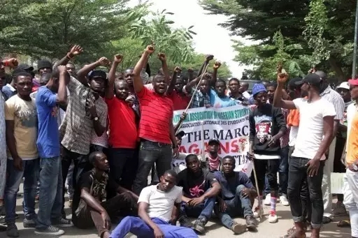 2月23日,尼日利亚学生在位于阿布贾的DSTV尼日利亚总部外对南非发生的暴力事件表示抗议。(AFP)