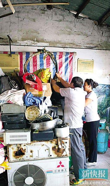 刘伯与妻子李姨在收拾刚回收的几件小电器。李红云/摄