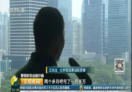 现货原油投资者 崔女士:因为当时换一个平台就亏,换一个平台亏,当时就觉得, 越让你亏他就抓住你的心理了,他就觉得你要回本,我家里一点积蓄都没有了,他就这样用一种哄骗手段让我去贷款, 就在十二月底的时候,让我贷款的时候就让我大量的买,买了以后就让我大额的亏损。