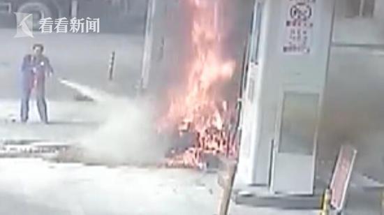 原标题:无惧烈火!男子加油站恶意纵火 加油员飞身扑火惊险万分