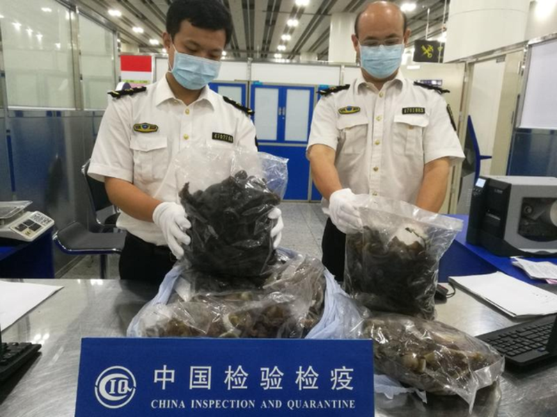 近日,深圳皇岗检验检疫局工作人员在福田口岸查获旅客携带入境生驴皮15公斤。该批生驴皮被携带人员藏匿在行李箱中,仅简单晒干后切割为条块状,未进行深加工处理,肉眼可见污渍,散发一股腥臭味,无证书无标识。该旅客自述该驴皮来自南非,计划用于熬制阿胶。该局已依法对上述生驴皮作截留销毁处理。