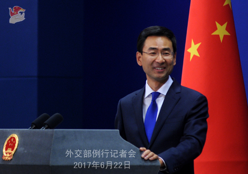原标题:2017年6月22日外交部发言人耿爽主持例行记者会
