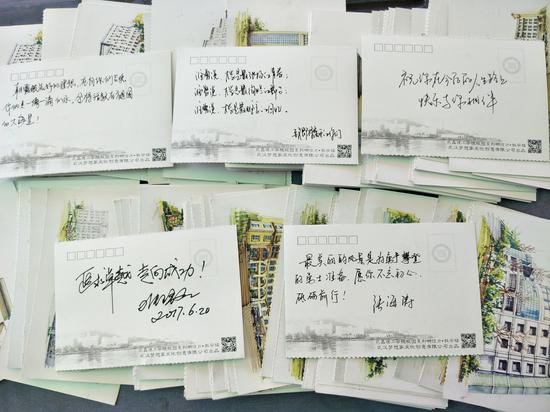 央广网武汉6月22日消息(记者左艾甫通讯员张琳叶刘明杨)又是一年毕业季,6月21日、22日,是武昌理工学院2017届毕业生离校的日子。该校艺术设计学院邀请学院师生亲手写下300余张校园明信片,深情赠别即将离开母校的2017届毕业生,被赞“最走心”的毕业礼物。