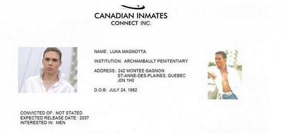 海外网6月22日电 2012年5月,加拿大蒙特利尔市发生的一起凶杀案震惊全球,成人片演员卢卡·马尼奥塔(Luka Magnotta)将中国籍留学生林俊杀害后分尸,并将部分尸块寄给在加拿大首都渥太华的两大政党总部。