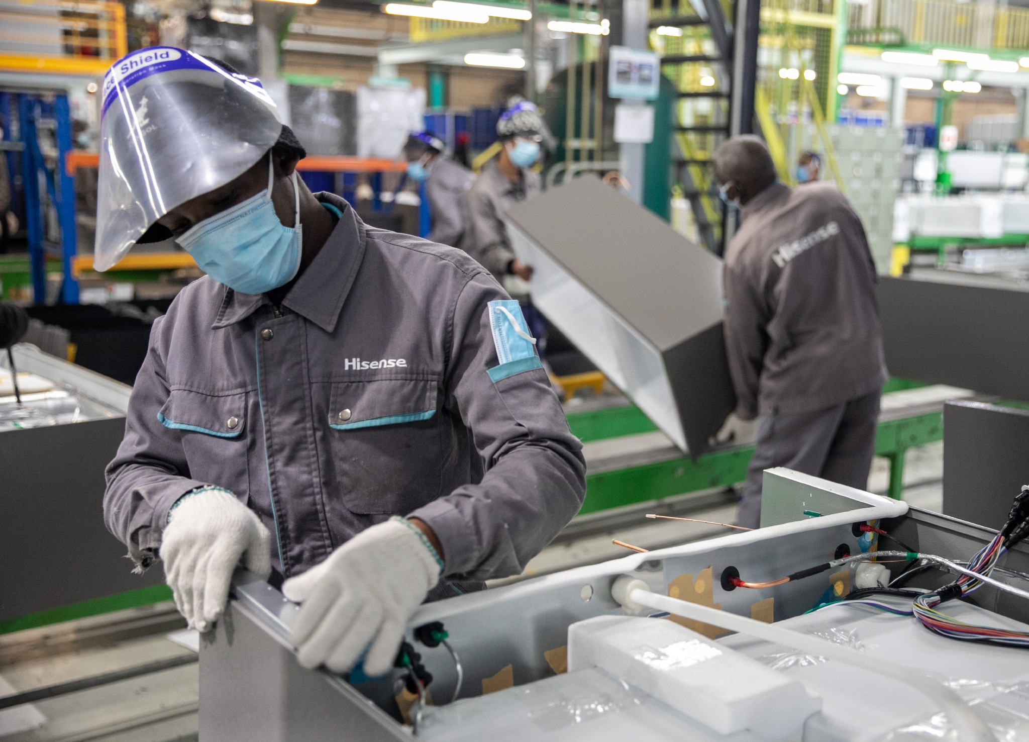 6月1日,当地员工在南非开普敦海信南非工业园的冰箱生产线上工作。新华社记者 吕天然 摄