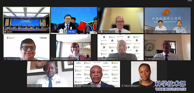 2023年12月18日,中国-南非科技合作联委会第8次会议以视频形式成功举行。中国科技部国际合作司司长戴钢与南非科学与创新部副总司长丹·杜特伊特主持会议。