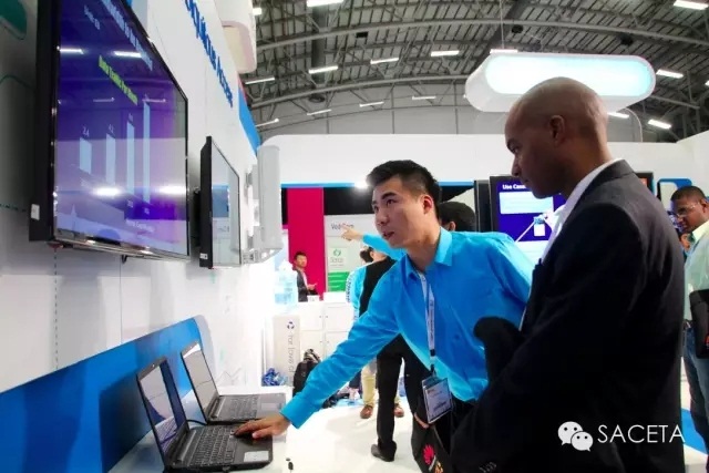 11月举行的非洲电信展上,一名中兴员工为非洲参观者演示解决方案。人民网 张洁娴 摄