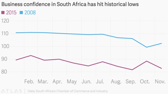 与此同时,企业信心持续低迷。11月间,南非商会发表的企业信心指数更是降低到了创纪录的水平,这充分反映了经济环境当中存在的重大变数。