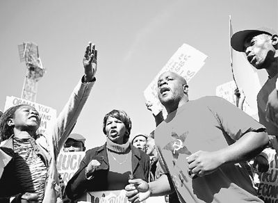 当地时间6月28日,南非比勒陀利亚的一些民众举行集会,抗yi奥巴马访问南非。