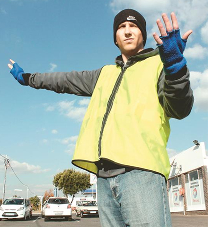 本报讯 看车警卫可说是南非最特别的一道风景,这些不属于任何一家保安公司的服务人员穿着破烂的衣服,加上一件反光背心,站在停车场内,声称是在帮民众看车,而当民众把车开走的时候,如果不给他们小费,这些看车警卫便有可能会用愤怒的眼光瞪着你。