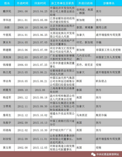 此外,外逃时间5-10年的达到4人,11-15年的达到5人。