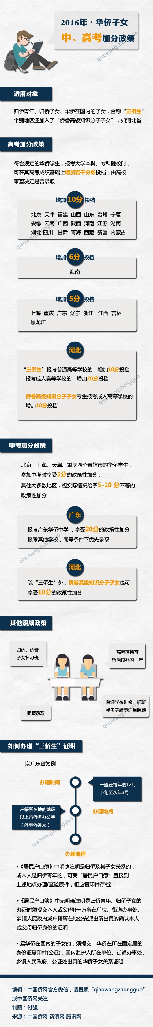 一直以来,中国对华侨子女回国读书、升学都有一系列的照顾政策,2016年也不例外。下面就请大家随小侨一起看一看,今年参加中、高考的华侨子女,都能享受哪些加分&照顾政策?