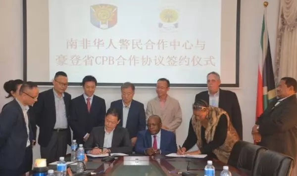 随后,在中国驻南非使领馆官员的见证下,李新铸主任代表南非华人警民合作中心与豪登省警民合作论坛马塞勒拉主席签署了合作协议。