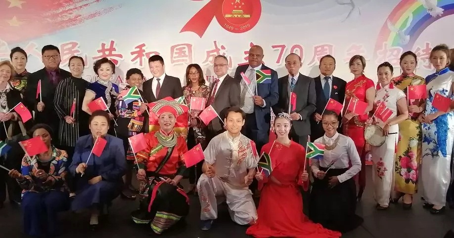 本报记者龙采访报道 9月26日中午,驻约翰内斯堡代总领事屈伯勋于希尔顿酒店举行招待会,隆重庆祝中华人民共和国成立70周年。约堡总领馆郭斌副总领事主持招待会,非洲人国民大会自由州省主席萨姆·马西尼尼、南非豪登省执行委员会成员姆巴里·赫洛佩、领区政商界和学界代表、多国驻约堡总领事、中资机构负责人、华人华侨代表数百人出席。