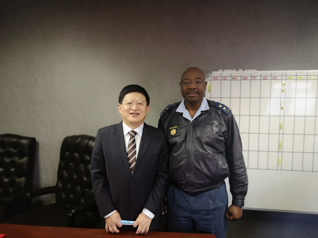 Mthombeni将军欢迎唐中东总领事一行的到来,并逐一对总领馆关心的问题就行了回应,表示华人社区与警察厅一直保持良好的合作关系,华人社区为豪登省尤其是约堡地区的经济繁荣发展及增加就业等做出了重要贡献,警方将全力保护在辖区合法经营的中国企业和人员的安全。Mthombeni将军表示,愿继续与总领馆保持良好沟通协调,为豪登省的中国公民提供更好的安全保障。