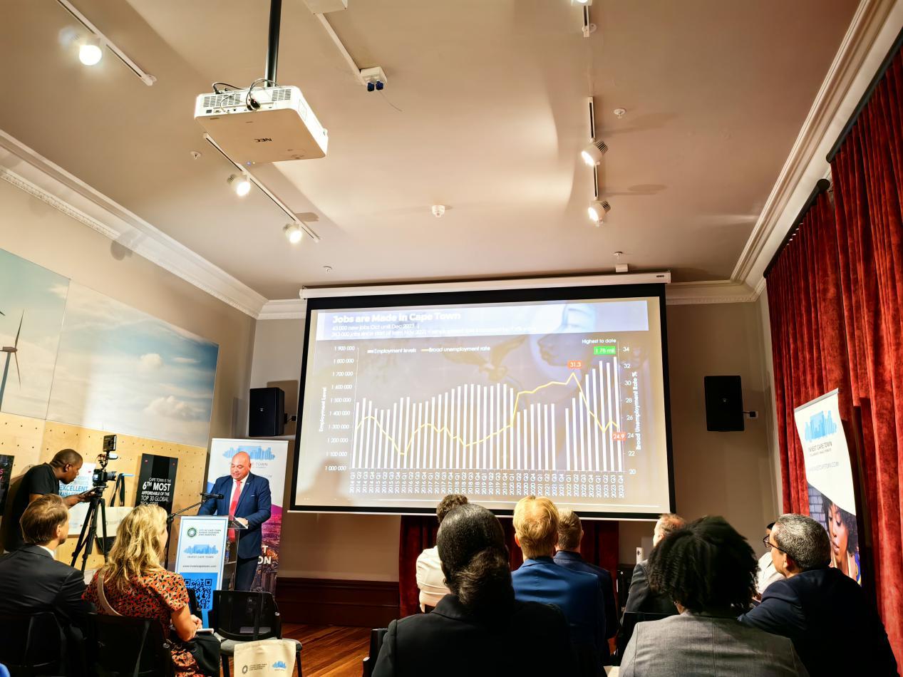 福斯详细介绍了开普敦市经济增长、旅游业增长、促进就业、招商引资、产品出口等各方面情况。绿色开普公司、亚特兰蒂斯经济特区及国际机场负责人分别就开普敦绿色经济项目、经济特区建设、机场运营情况等进行了宣介。
