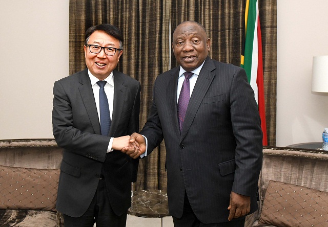 拉马福萨总统请吴大使转达对习近平主席的诚挚问候,感谢中方长期以来为南非经济社会发展提供宝贵支持,预祝中非合作论坛峰会取得圆满成功。拉马福萨表示,南非新一届政府坚定奉行对华友好政策,愿同中方加强对话交流,拓展深化贸易投资、基础设施、新能源等领域务实合作,推动两国关系取得更大发展。