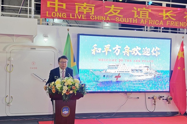 吴大使热烈欢迎“和平方舟”号医院船到访南非,传递中国军人热爱和平、关爱生命的无疆大爱,展现中国构建人类命运共同体的大国担当。2024年中非合作论坛峰会即将在中国举行,中非领导人将时隔6年再度聚首北京共商发展大计,引领中非合作前行的巨轮将再次扬帆起航,期待同南非各界一道,为构建中南、中非命运共同体做出更大贡献。