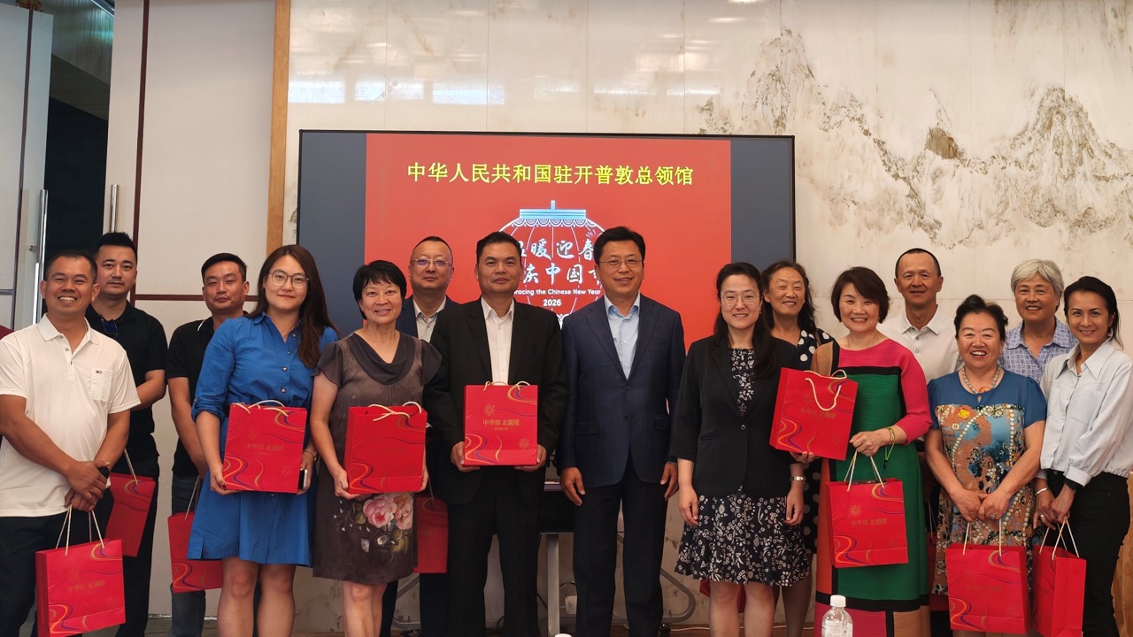 2026年1月29日,驻开普敦总领馆举办“温暖迎春·共庆中国年”慰侨座谈会暨新春暖心包发放仪式,任发强总领事出席并致辞,侨界代表近20人参加。王晓副总领事主持。