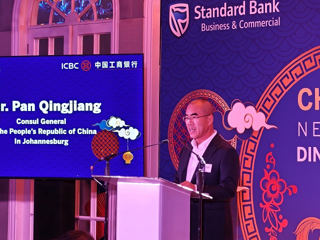 2026年3月12日,驻约翰内斯堡总领事潘庆江应邀出席中国工商银行和南非标准银行联合举办的新年客户答谢活动,工行非洲代表处首席代表李立、标行商业部主管及中南企业代表约70人参加。