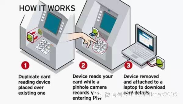 2,盗读装置读取你的银行卡信息,摄像头记录你的密码。
