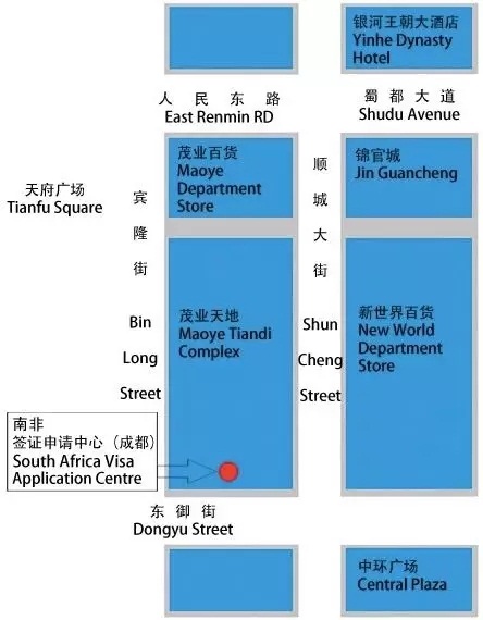 南非签证中心(成都)地址:成都市锦江区东御街19号,茂业天地,A座31层3103,邮编610016