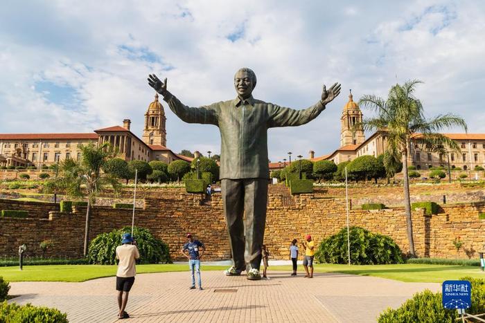 这是12月5日在南非约翰内斯堡曼德拉广场拍摄的一座曼德拉铜像。 曼德拉1918年7月18日出生于南非一个部落酋长家庭,致力于追求种族平等和民主事业,曾经在狱中度过27个春秋。在他的努力下,南非最终以和平方式废除种族隔离制度。1994年5月,曼德拉成为南非第一位黑人总统。2013年12月5日,95岁的曼德拉因病去世。 新华社记者 张誉东 摄