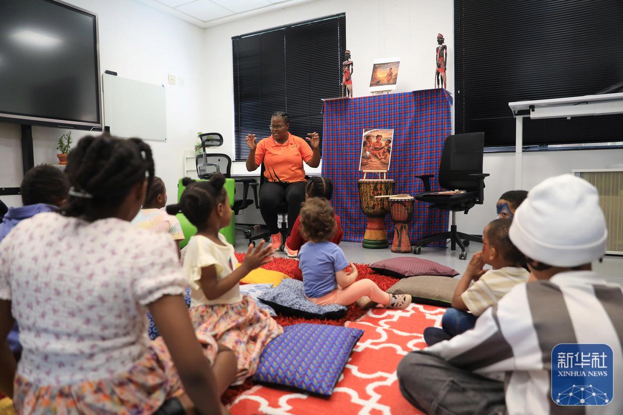 2月21日,在南非约翰内斯堡,孩子们在国际母语日活动上参加故事会。