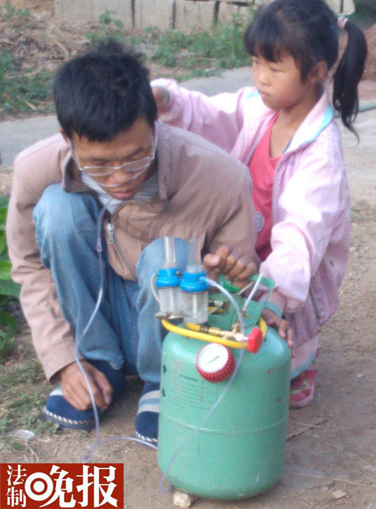 因经济困难自制廉价“氧气罐”