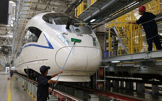 CRH380B型高速动车组,车轮可以自动喷洗清洁。