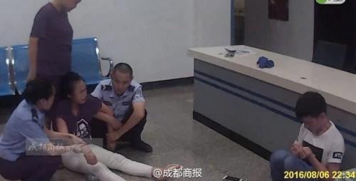 随后女孩倒卧在地上,任凭男孩和民警如何劝说、拉拽都不肯起来,并不时用头撞击接警台侧面和地面,吓得男孩不断蹲在身旁哀求,几位民警也连忙团团将她围住。女孩坐在地上一阵哭嚎之后,民警突然发现,她紧咬牙齿,舌尖外抵,疑似要咬舌自残,民警赶紧一面紧紧卡住她的上下颌骨,一面找来毛巾等物品塞在她嘴里,防止发生意外。 待女孩情绪少许平复后,男孩告诉民警,自己是罗江人,女孩小雪是富顺人。两人之前同在成都一家厂里打工,并谈起了恋爱,但女方家里认为两家相隔太远,始终不同意,自己便打算跟小雪分手。
