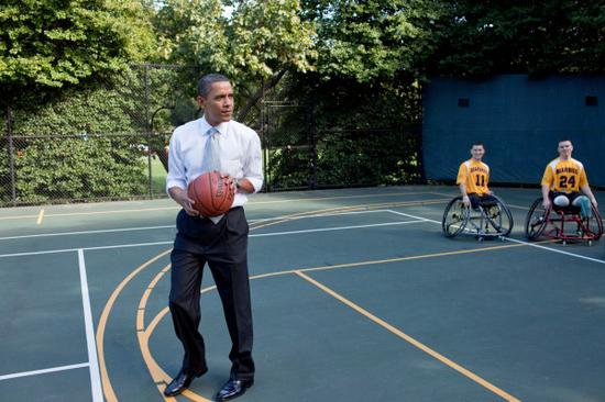奥巴马在老布什的网球场里安装了篮框在他们已经公开的改造中,老鹰是其中略微有些改动的部分。白宫里增添了大量的鹰,几乎无处不在。老鹰栖息在一对基座上,它们的爪子紧紧贴着镀金的岩石,一只两米多高的老鹰在罗斯福厅里欢迎着访客的到来,看上去有点令人害怕:鹰嘴微张,翅膀高高地张开着,就好像随时准备着攻击。另外一只镀金的老鹰也从天花板上向下凝视着椭圆形办公室,爪子紧紧抓着枝形吊灯,好像随时准备着向那些拒绝合作的国家元首们冲下来。
