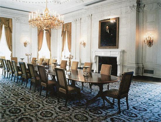 1961年,肯尼迪夫妇搬进了白宫,他们发现杜鲁门时期的装修和家具已经过时,杰奎琳本人拥有极好的艺术品位,但是当时白宫预算有限,不足以重新装修一遍,所以杰奎琳就邀请了室内设计师的西斯特•帕利什(Sister Parish)来设计翻修房子,他们对几间卧室和其他的一些房间做了重修,同时也转变了一些房间的功能,比如将以前威尔士王子的套房变成私人餐厅和家庭厨房。肯尼迪夫人还邀请了亨利·杜邦(Henry DuPont),一位人缘极好的美国文物的收藏家以及Stéphane Boudin,一位名望颇高的巴黎设计师,House of Jansen的设计者,来为装修注入更多的高雅元素。