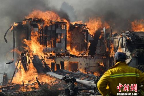 中新网12月7日电 综合美国《世界日报》报道,美国圣塔安那强风威力十足,当地时间12月4日在南加州圣塔芭芭拉及洛杉矶地区引发“Thomas Fire”野火,火势扩散快速,不到一天时间,风力不断地将火势吹向洛杉矶县的雪尔玛(Slymar) 、圣塔普拉(Santa Paula)及安杰拉国家公园(Angeles National Forest)等地区,连续两天,三场大火焚毁无数栋房子,数千名民众也遭强制疏散,这些地区也都已列入警戒区。